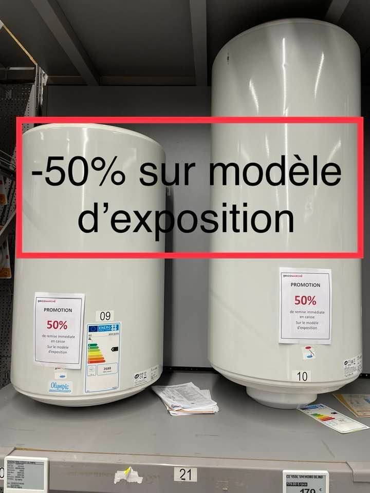 50% de REMISE IMMEDIATE sur CHAUFFE-EAUX de grandes marques dans votre Bricomarché Saint léonard à proximité de Fécamp (sur modèles d'exposition référencés en rayon jusqu'à épuisement) et réglez en 3 ou 4 fois SANS FRAIS avec votre carte bancaire ‼
