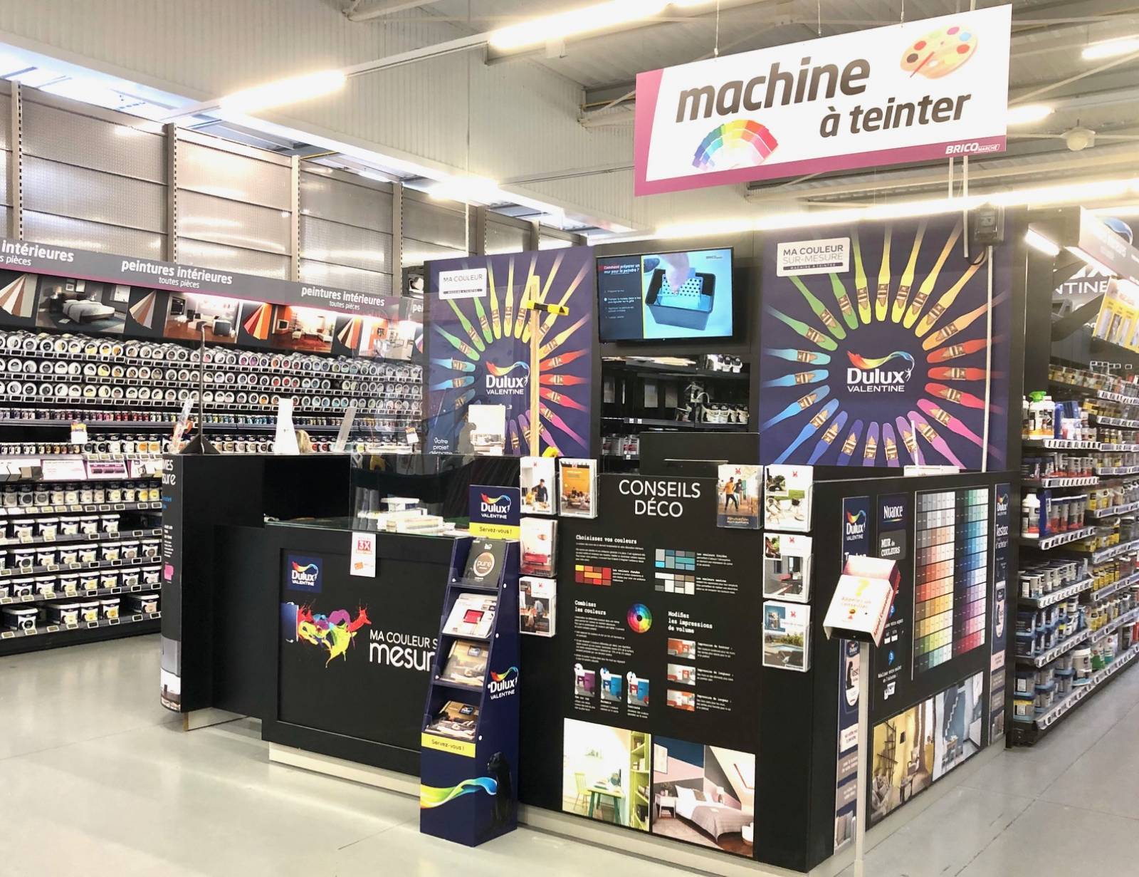 Equipé d'une machine à teinter dernière technologie, notre spécialiste créera vos couleurs sur mesure et les quantités nécessaires selon les surfaces de votre maison ou appartement.