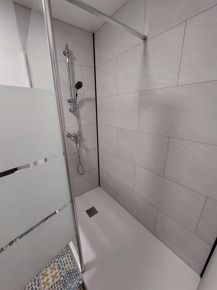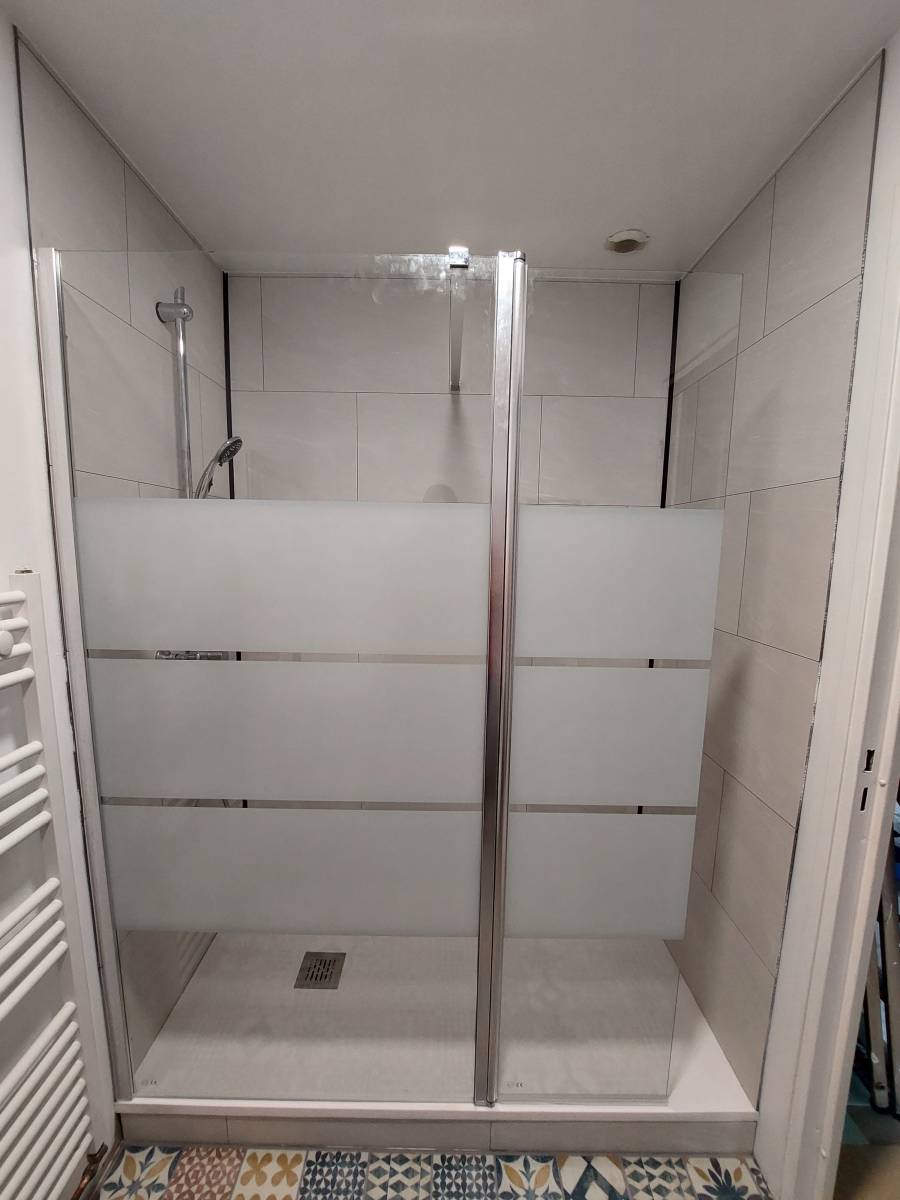 Après les métrages pris sur place et la vérification des arrivées/écoulements d'eau et points d'électricité, notre professionnel a travaillé de concert avec nos partenaires artisans pour l'installation de cette salle de bain avec douche à l’italienne sur mesure chez notre client que nous remercions pour sa confiance.