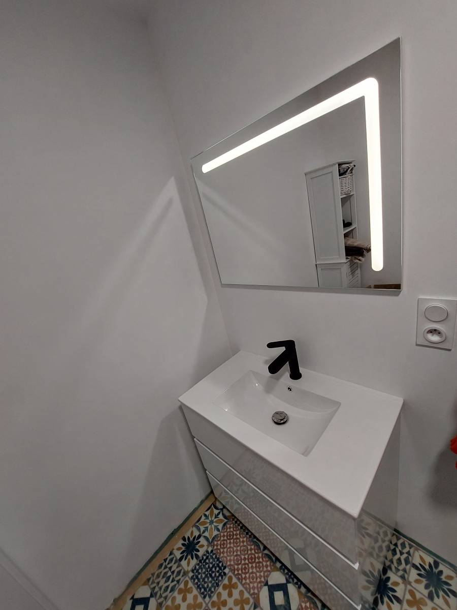 Installée par des professionnels, plombiers et électriciens, découvrez la dernière salle de bain sur mesure avec douche à l’italienne que nous a confié notre client M. B.